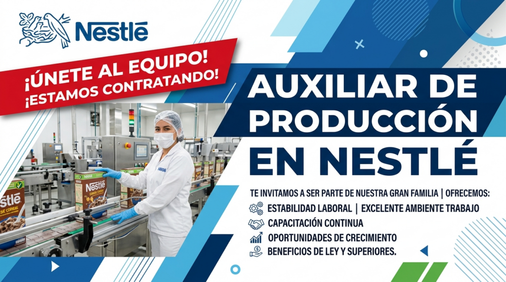 Auxiliar de producción en Nestlé Mas Informacion ->